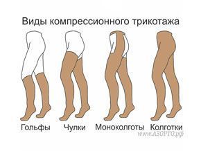 Первое - это вид компрессионного трикотажа - колготки, чулки, гольфы и моноколготы.
