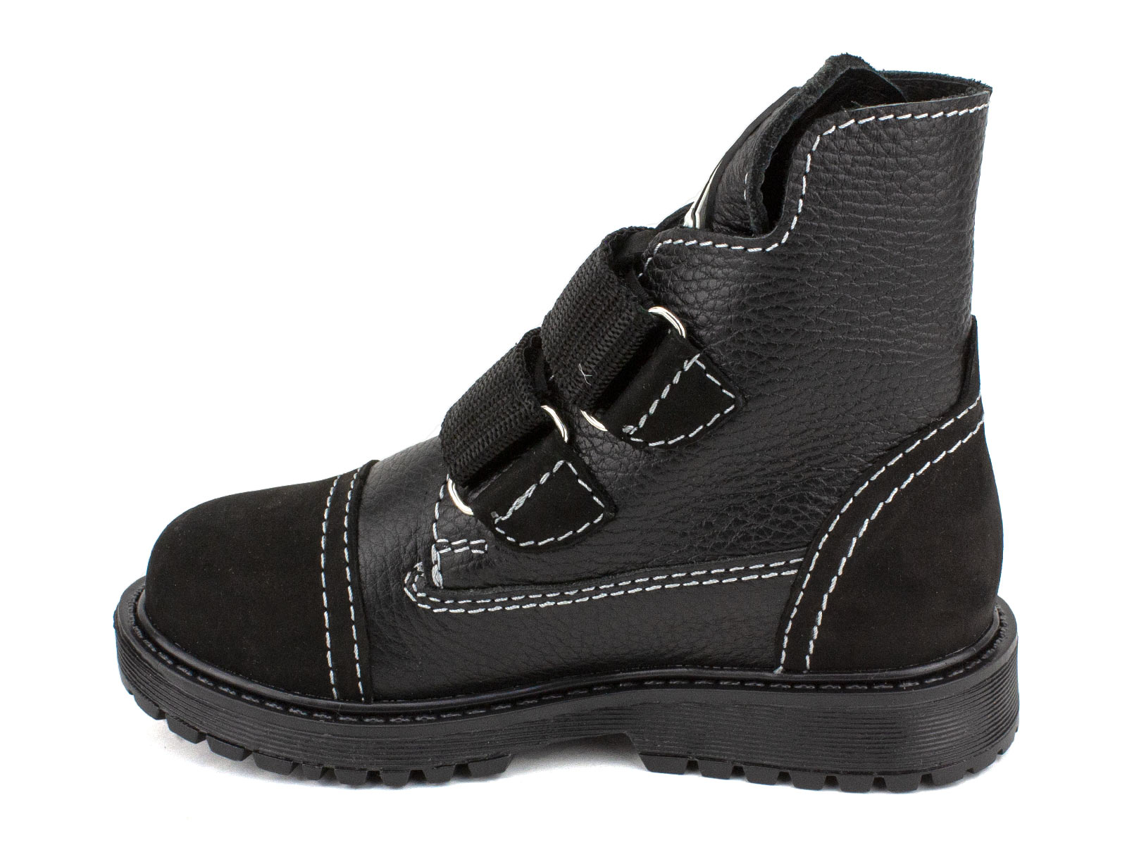 Ботинки изготовлены из натуральной кожи, которая обеспечивает воздухообмен и адаптируется к анатомии стопы. Мягкая байковая подкладка исключает натирание, а подошва из ТЭП гарантирует гибкость и износостойкость. Съемная стелька с байковым покрытием позволяет использовать индивидуальные ортезы при необходимости. Жесткий задник и надежное крепление на двух липучках фиксируют голеностоп, предотвращая травмы во время активных игр. Такая конструкция сочетает лечебные свойства с повседневным удобством.