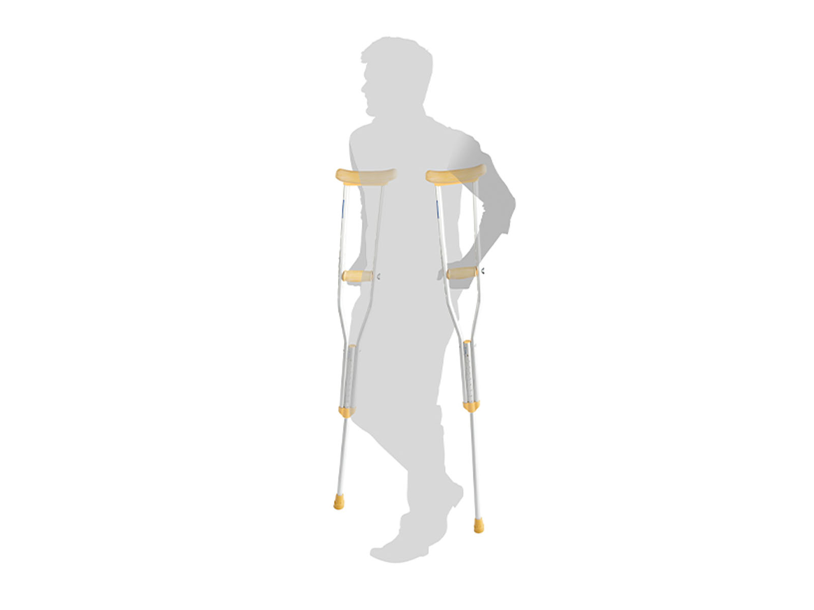 - Отрегулируйте высоту костылей под рост: вставьте внутренние трубки до нужной длины, зафиксируйте кнопкой.