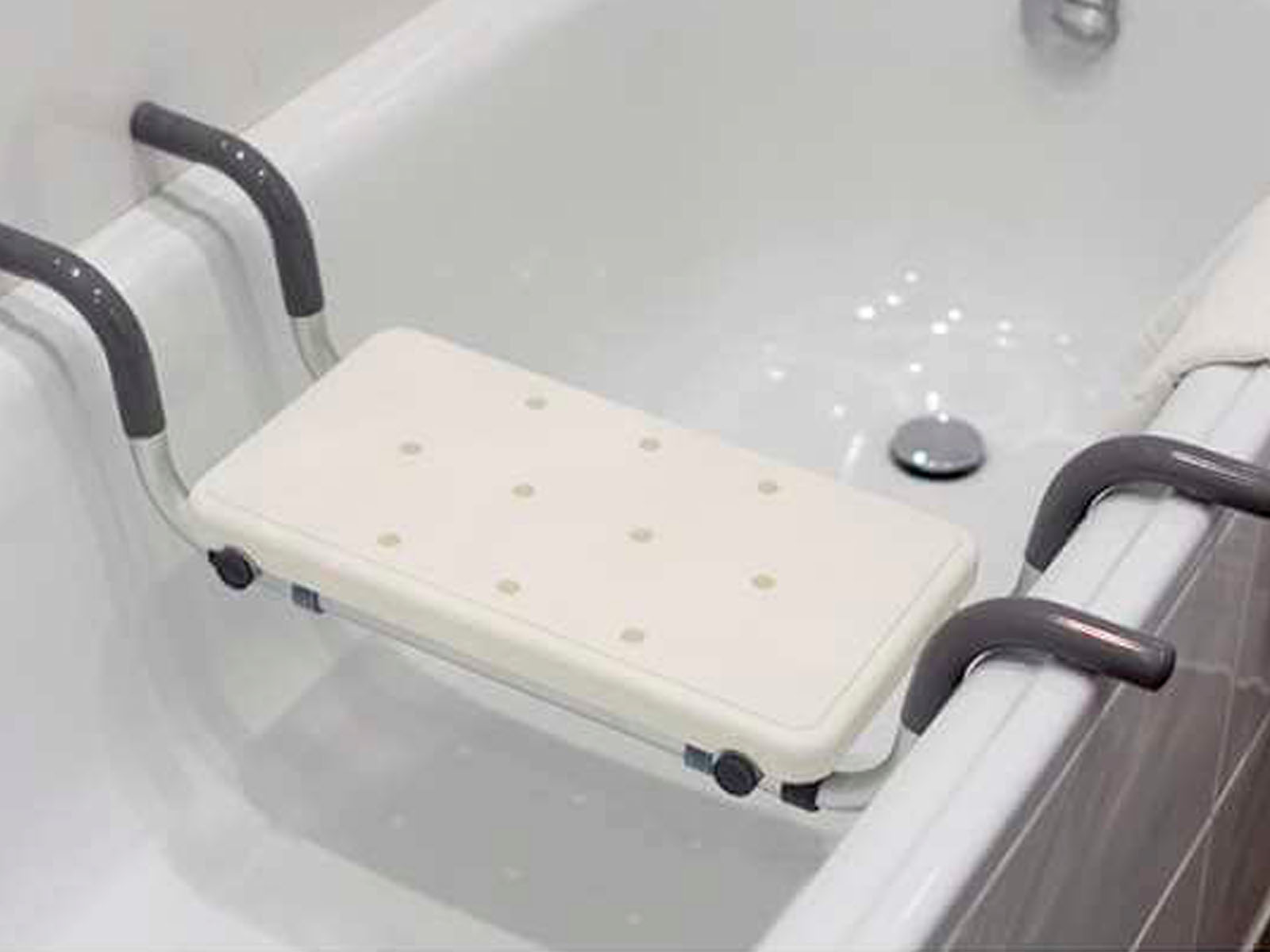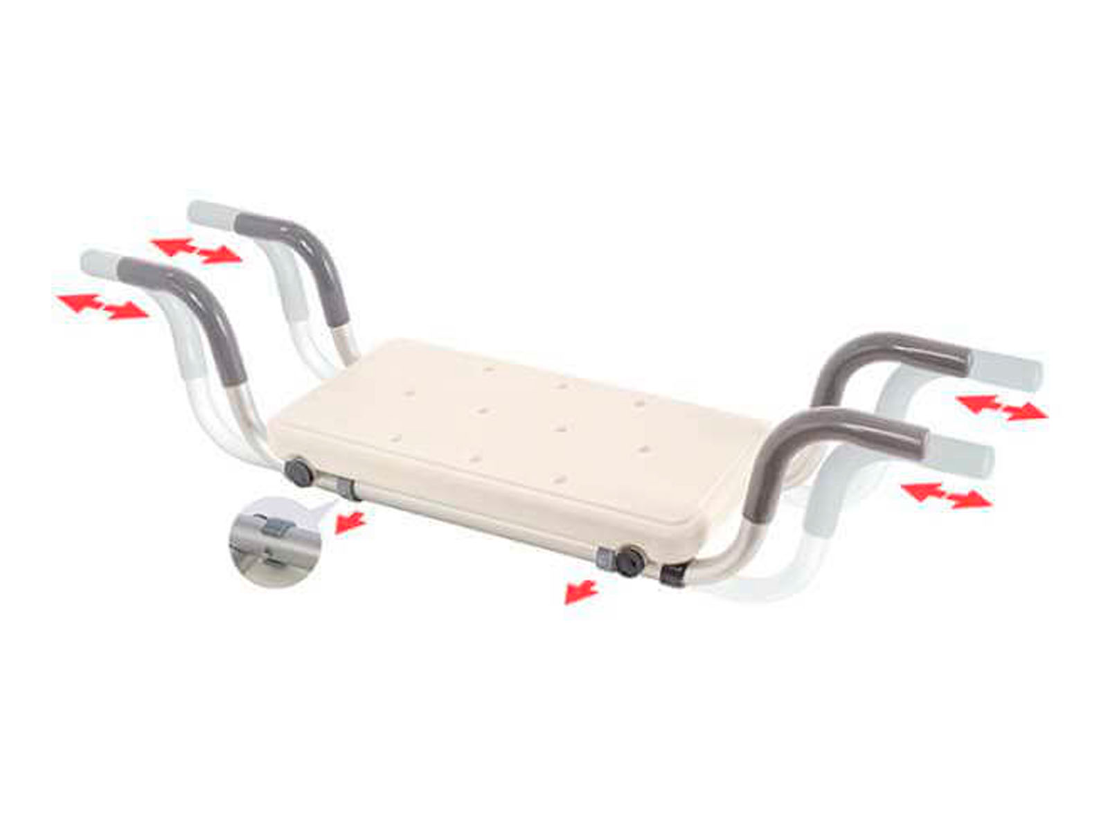 - Регулировка ширины: сиденье подстраивается под ванну с шириной бортиков от 72 до 82 см.
