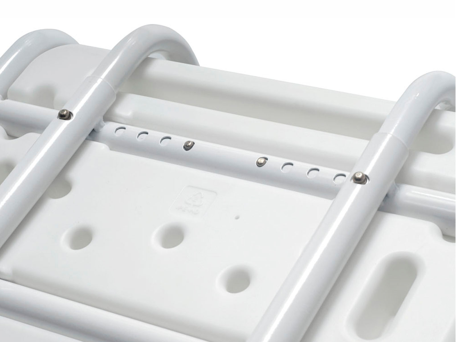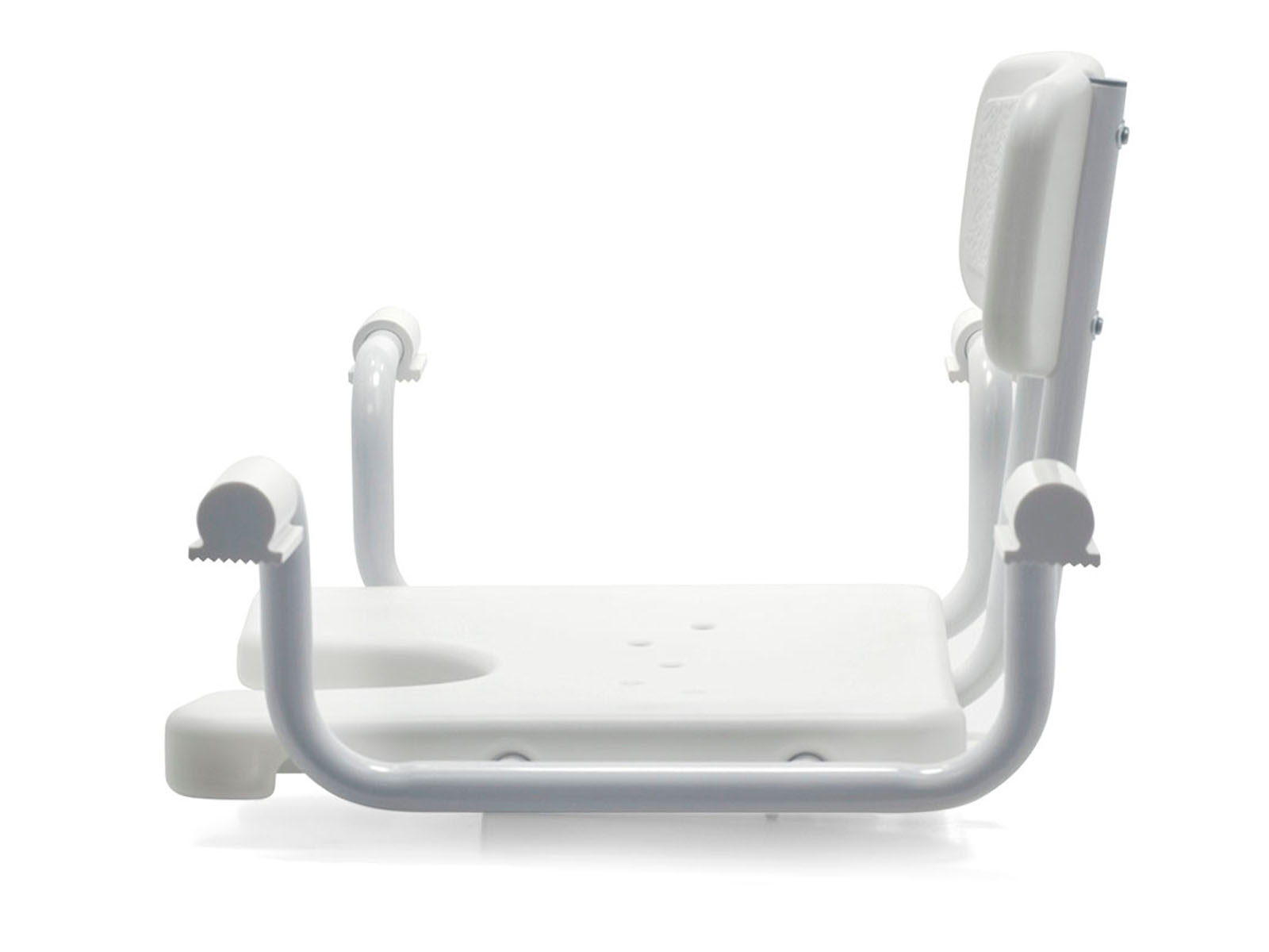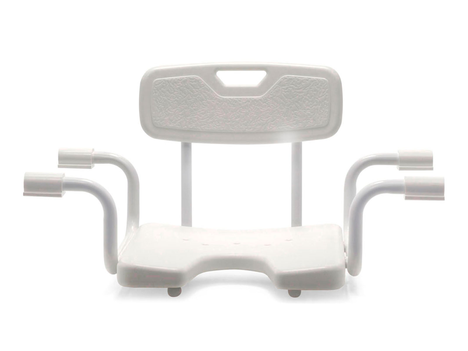 Пластиковое сиденье + алюминиевый каркас с порошковым напылением обеспечивают лёгкость, влагостойкость и долговечность. Прорезь‑вырез (гигиенический U‑образный вырез) и отверстия для слива воды повышают удобство использования и гигиеничность. Резиновые наконечники на ножках предотвращают скольжение и надёжно фиксируют приспособление на ванне.